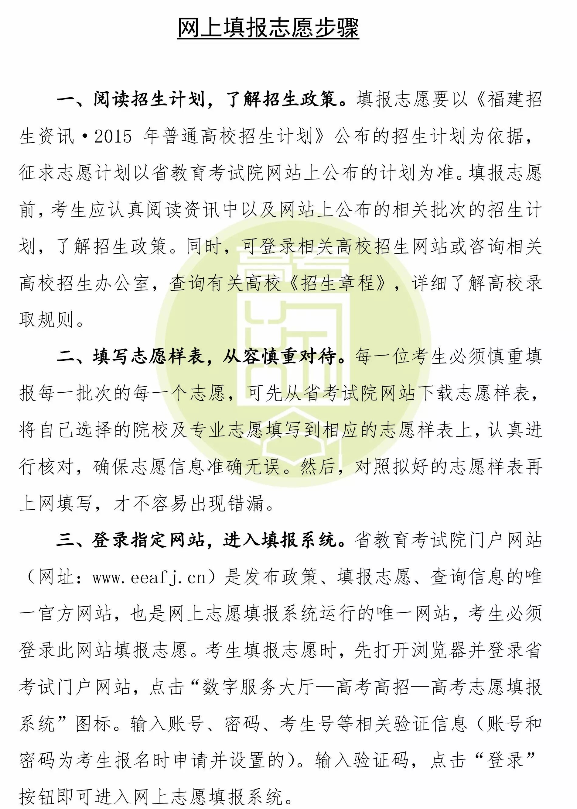 福建省2015年高考网上填报志愿步骤