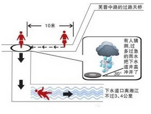 这样的漩涡,说明有没有盖子的下水道入口。2013年长沙大雨,涉水过街的一个女孩子就落入下水道。