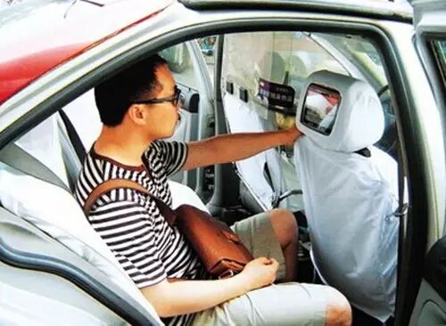 现在路面上不少新的出租车,在前排座椅的后部,会挂一个液晶显示屏用来播放广告。