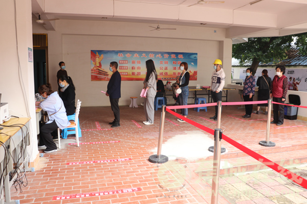 同时,记者还来到了蕉南街道新增设的芦坪小区接种点进行探访,在现场,市民严格按照工作人员的要求,有序完成各项工作。接种室内,医务人员小心翼翼地为接种人员接种疫苗,手法熟练精准,一切井然有序。