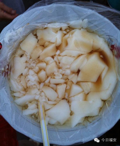 福安人喝豆腐仔的配料,大多用板(红)糖加姜母(老姜)煮的糖水;因为,红糖姜母性温,豆腐仔性凉,温凉中和,有益健康,妇孺皆喜,老少咸宜。正所谓“豆腐仔食毛(没)骨,实在是好乇(好东西)”也。(福安新闻网 杨昌长)