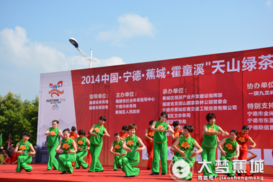 宁德蕉城在线 (黄钲平 杨菲菲)金秋送爽、丹桂飘香。9月6日上午,2014年中国•宁德•蕉城•霍童溪“天山绿茶”杯山地自行车邀请赛在千年古镇——霍童隆重举行。开幕仪式上,当地精心准备了充满地方特色的文艺表演,为本次赛事增色不少。