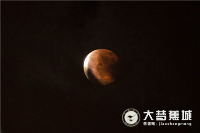18时43分,摄影爱好者钰玲尖叫起来,“ ‘红月亮’出来了,可以拍照了”。“在哪啊? 在哪啊?”杨松回道。随着钰玲一指,现场人员纷纷望向天空,有的肉眼观测,有的用望远镜寻找残缺的“红月亮”。但月亮似乎是比较害羞,跟大家玩起了捉迷藏,迟迟不肯露面。