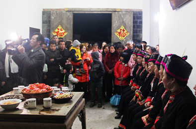 斗歌引来畲族村民的围观