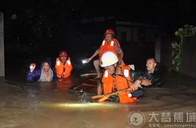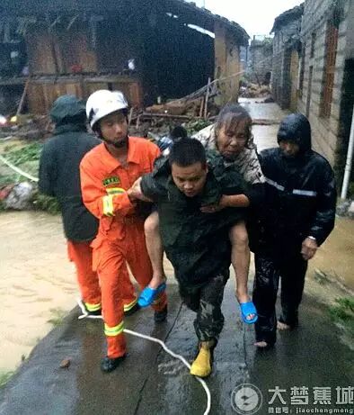 宁德消防官兵在蕉城区飞鸾镇冒雨转移受困群众