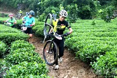 从刚出发的一马平川,到中途的石子路左摇右摆努力保持平衡;因下雨沙石路轮胎深陷奋力挣扎前行;崎岖不平的羊肠小道小心翼翼慢行;湿滑石阶地段落地推行;扛车穿行茶园……作为青年组参赛选手,来自山西的29岁青年房虎面对眼前的难度关卡却觉得 “骑”乐无穷。“虽然下着绵绵细雨,但是骑起来很兴奋,移步换景,很刺激,也很有挑战性,第二次来到这里挑战自我,依旧享受骑行的过程。”他说,阴雨天比赛别有一番乐趣,这要求骑手要掌握较全面的骑行技术,也要有一定的应变能力和体力。挑战复杂多变路面与天气是山地自行车越野相对公路骑行的另一种乐趣所在。