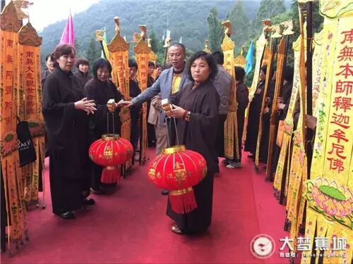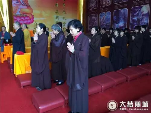 法会现场,居士们在钟磬齐鸣下齐颂佛祖圣号“南无本师释迦牟尼佛”,回音绕梁。