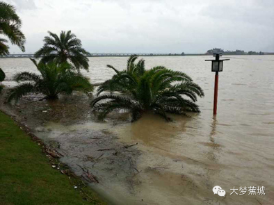 水漫东湖北岸 岸上路灯被淹(黄家盛 摄)