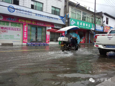霍童镇街道的积水,车辆艰难前行