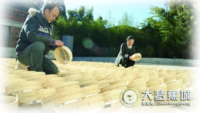 宁德网(郑成辉 许友盼 )2014年12月23日,在蕉城区虎贝乡黄家村,黄家蒸笼合作社的村民正在翻晒蒸笼。近年来,该乡不断发展绿色生态经济,大力扶持蒸笼产业发展,实现蒸笼产值1亿多元,年人均收入超万元,形成了“一村一品”的林下经济示范基地。