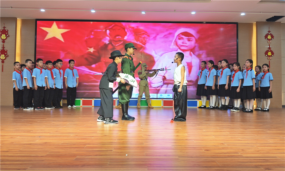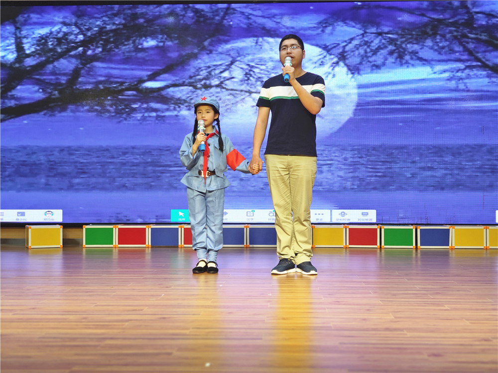 二年段孩子们带来的节目《传承》,将伟大的长征精神表现得淋漓尽致。高年段带来的朗诵节目《毛泽东诗词选》,歌颂了伟大领袖、诗人毛泽东。而由二三四五年级合作带来的诵读表演《新少年,国之魂》用孩子们稚嫩又坚定的声音向大家传递出一股气势如虹的青春力量。