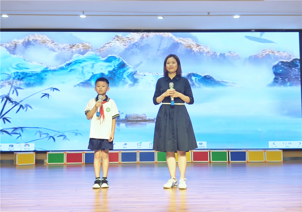 老师带领孩子畅游知识的海洋,家人给予孩子浓浓的关爱和温暖,活动现场各代表学生和家长也合作给大家带来了精彩的节目。《感谢》《春江华花月夜》《长歌行》《爱,像风一样》一首首动人的诗歌让大家感受到了浓浓亲子共读的温馨与美好。