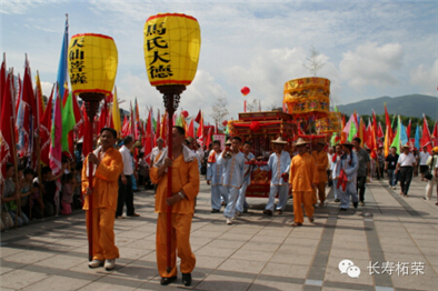 (五)送仙。送仙是马仙信俗活动中,最为大型的民俗仪式和文艺彩街活动。各境福首纠集本境能工巧匠,尽其所能,各出招数,装扮铁枝台阁、舞龙、舞狮、花车、腰鼓、高跷、各式花灯、八仙歌舞、大锣鼓吹,以展示其人文景观。送仙仪式为两个部分组成,一是彩街游行,二是祭拜欢送。
